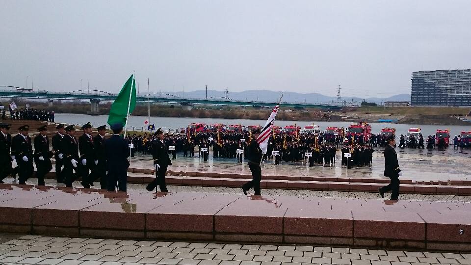 雨の中での出初式